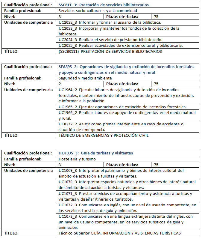 Los detalles de las cualificaciones convocadas las tenéis en los siguientes cuadros: